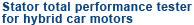 | These testers are for inspecting the electrical characteristics of armatures and stators. They accurately detect defects according to designated measurement sequences that are computer controlled, and they can print out the statistical processing and measurement data required for quality control. Almost all the properties required for windings can be inspected in an extremely short time. |